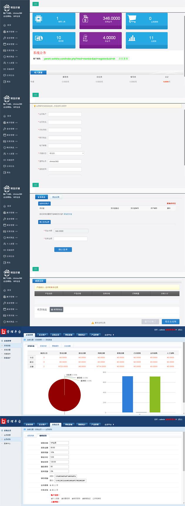本套直销软件采用:PHP5.3+MYSQL开发,是一套百元投资复利分红直销软件,带有WAP手机自适应版,具体的玩法请看制度说明。