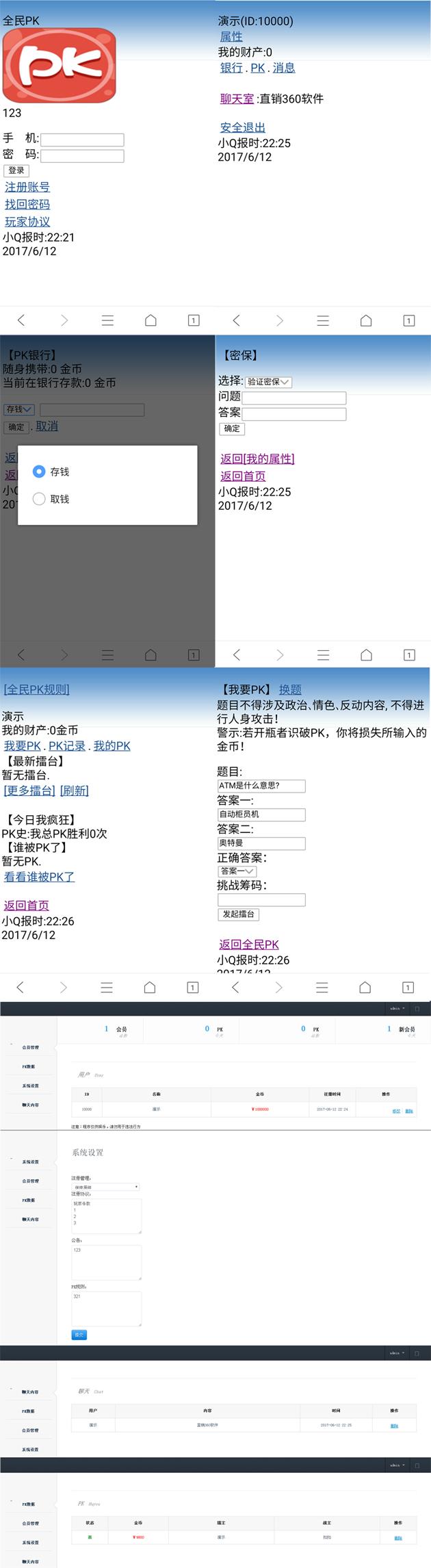 本套直销软件采用:PHP+MYSQL开发,是一套全民PK会员直销软件,手机版,系统很简单,但是也很新颖,具体的玩法请看制度说明。
