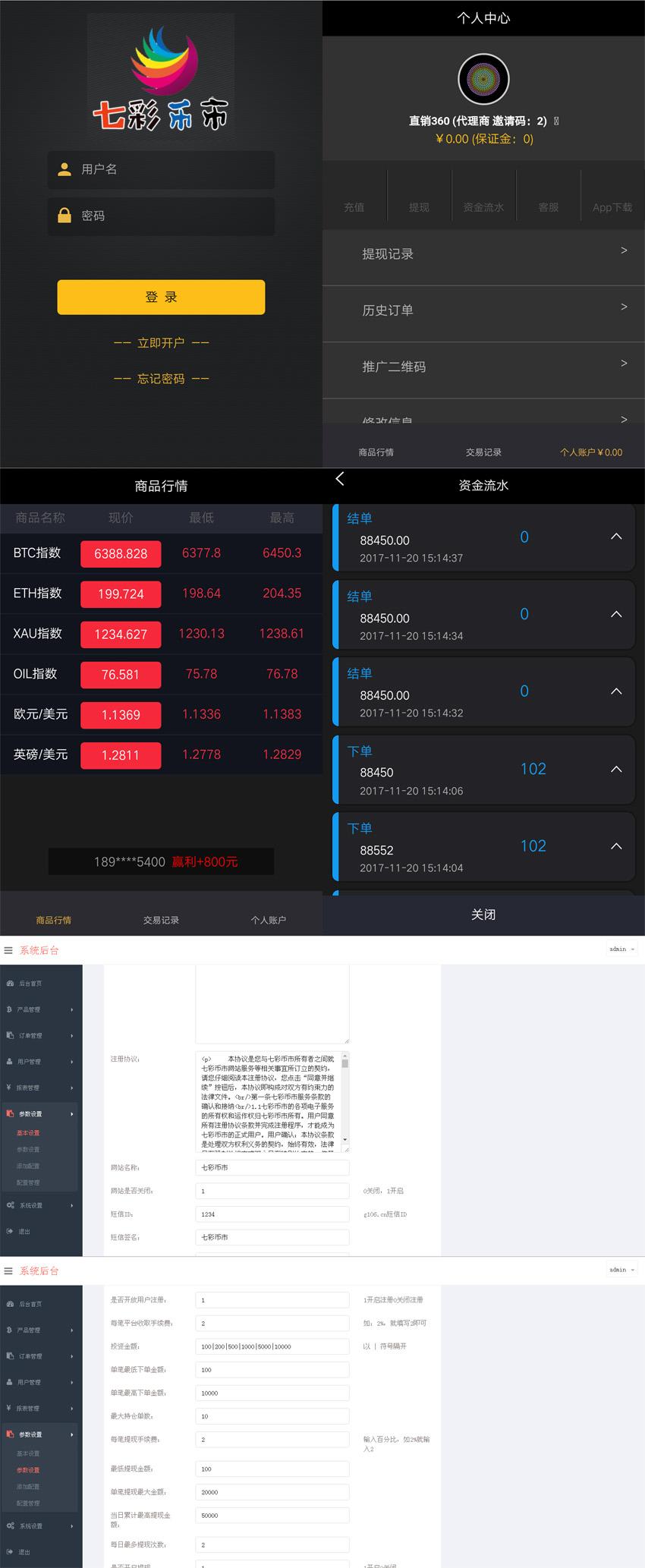 本套直销软件采用:PHP5.4+MYSQL开发,是一套七彩币市涨跌游戏直销软件,WAP手机版可打包APP,具体的玩法请看制度说明。