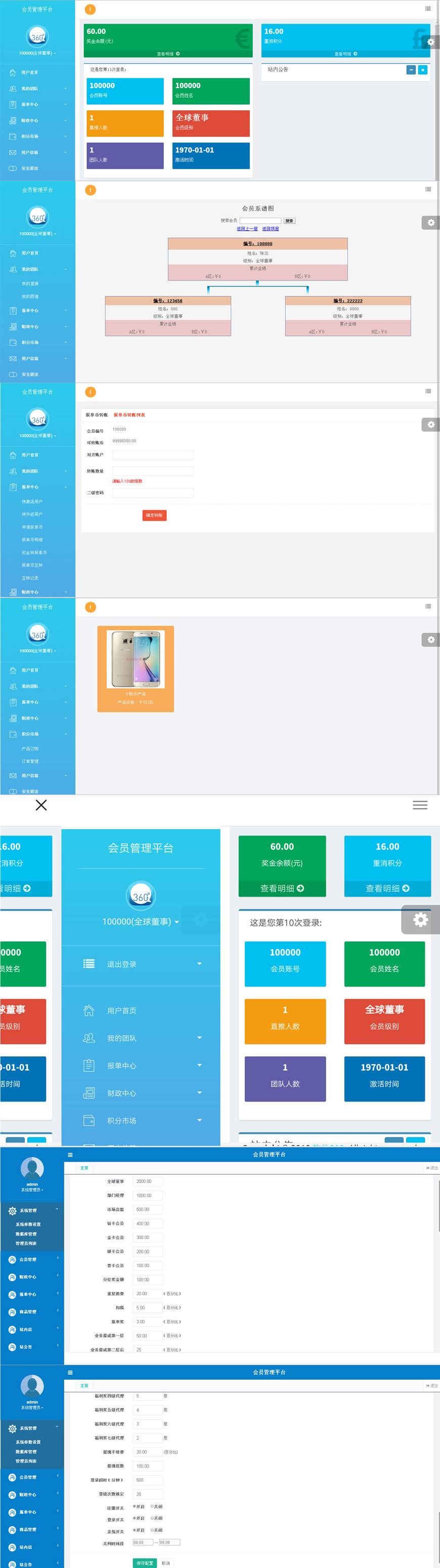 本套直销软件采用:PHP5.6+MYSQL开发,是一套双轨多级别层碰量碰团队奖带积分兑换直销软件,带手机端,可以打包APP,具体的玩法请看制度说明。