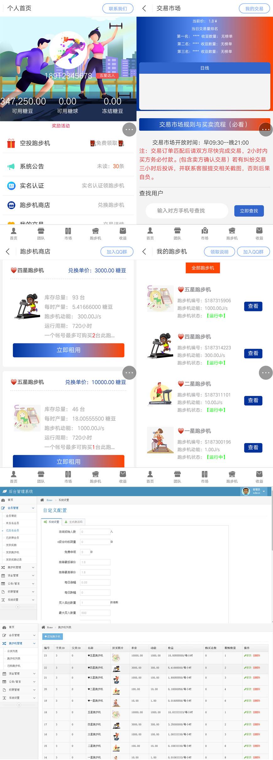 本套直销软件采用:PHP5.6+MYSQL开发,是一套跑步机租赁区块链产币直销软件,手机端,可以打包APP,具体的玩法请看制度说明。