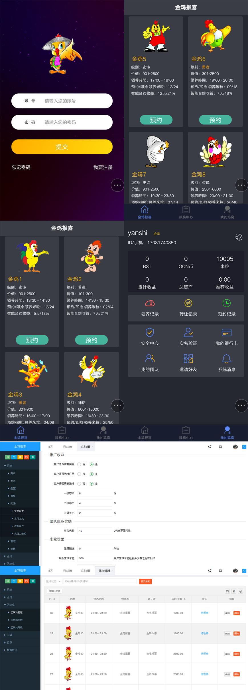 本套直销软件采用:PHP7.2+MYSQL+Redis环境,是一套宠物区块链养鸡系统直销软件,手机端,可以打包APP,具体的玩法请看制度说明。