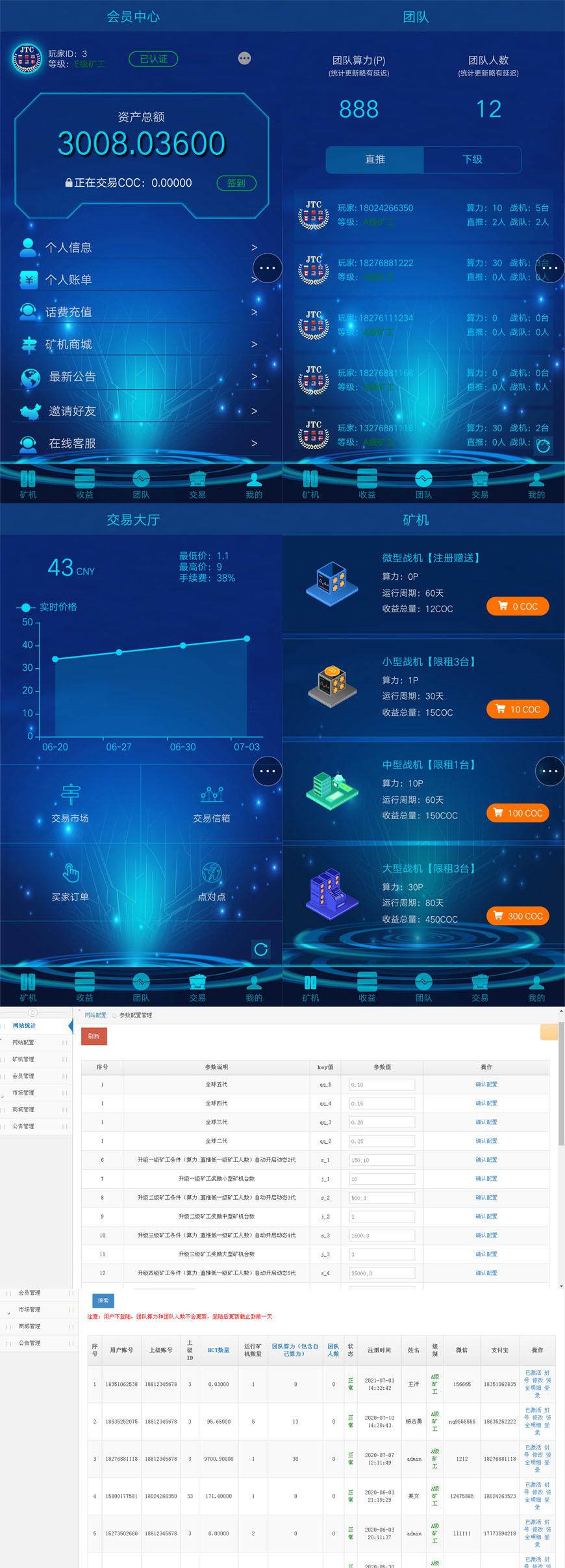 本套直销软件采用:PHP5.6+MYSQL环境,是一套区块链矿场算力挖矿带币交易中心直销软件,带手机端,可以打包APP,具体的玩法请看制度说明。