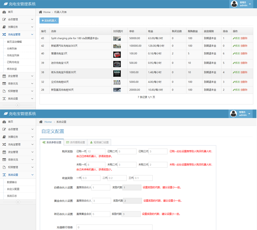 本套直销软件采用:PHP5.6+MYSQL环境,是一套多语言充电宝理财直销软件,带手机端,可以打包APP,具体的玩法请看制度说明。