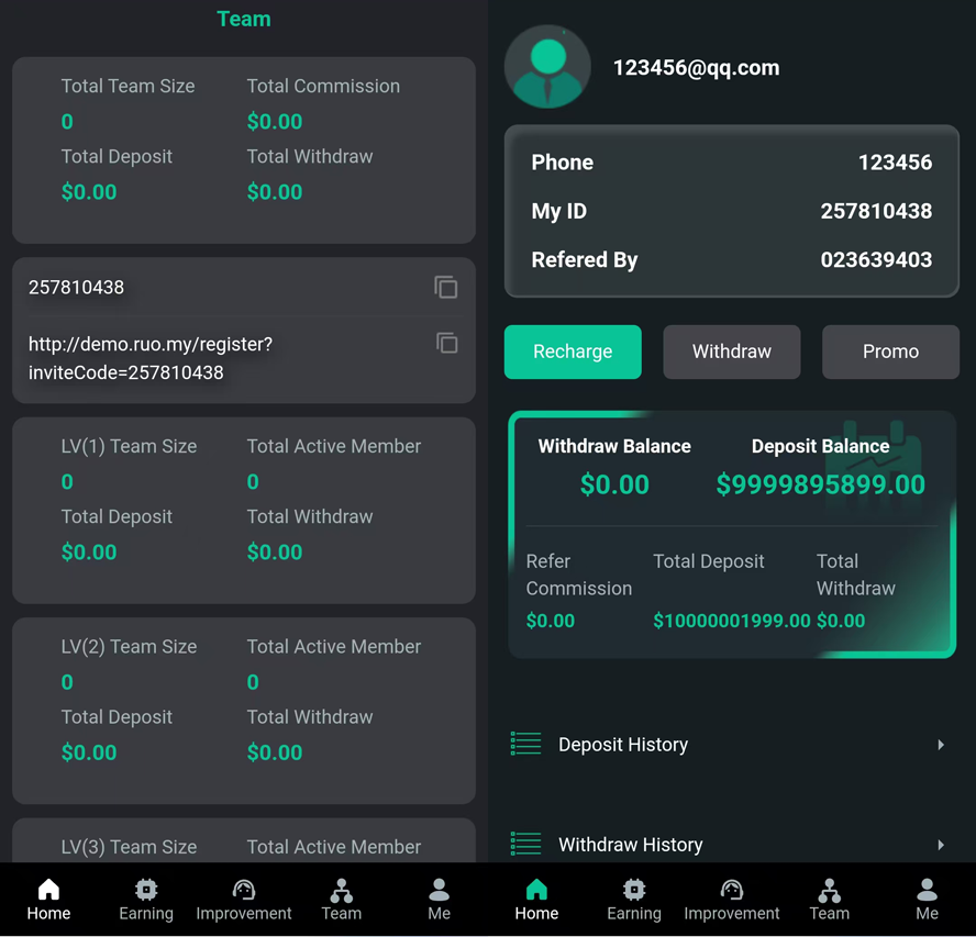 本套直销软件采用:PHP8.1+MYSQL环境,是一套纯英文项目投资分红直销软件,H5手机端,可以打包APP,具体的玩法请看制度说明。