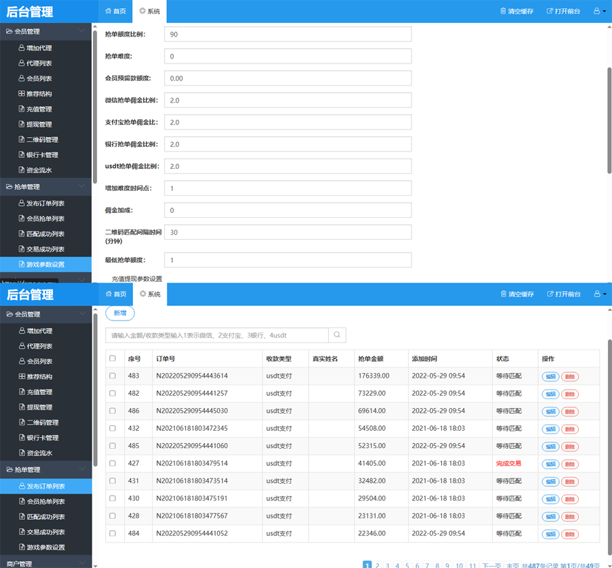 本套直销软件采用:PHP7.3+MYSQL环境,是一套USDT下单抢单分佣系统直销软件,H5手机端,可以打包APP,具体的玩法请看制度说明。